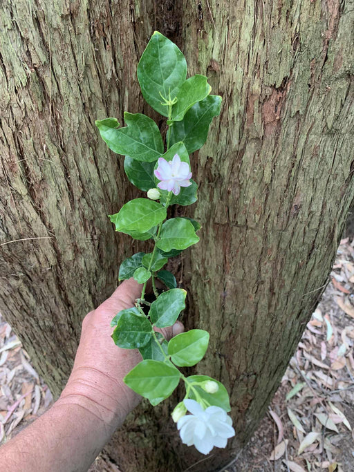 A very sought after and hard to find Jasmine variety, with large white flowers that develop a slight pink tinge, and an amazing aroma. These plants...