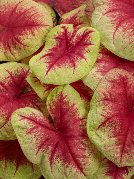 With their vibrant leaves, Caladiums are a favourite because of their amazing colour. From green, white, red or pink, these exotic plants can put on a show that competes with the most vibrant blooming species.Native to tropical South America, caladium plants flourish in warm, moist climates but can also be cultivated as summer bulbs in cooler regions or indoors with proper care.